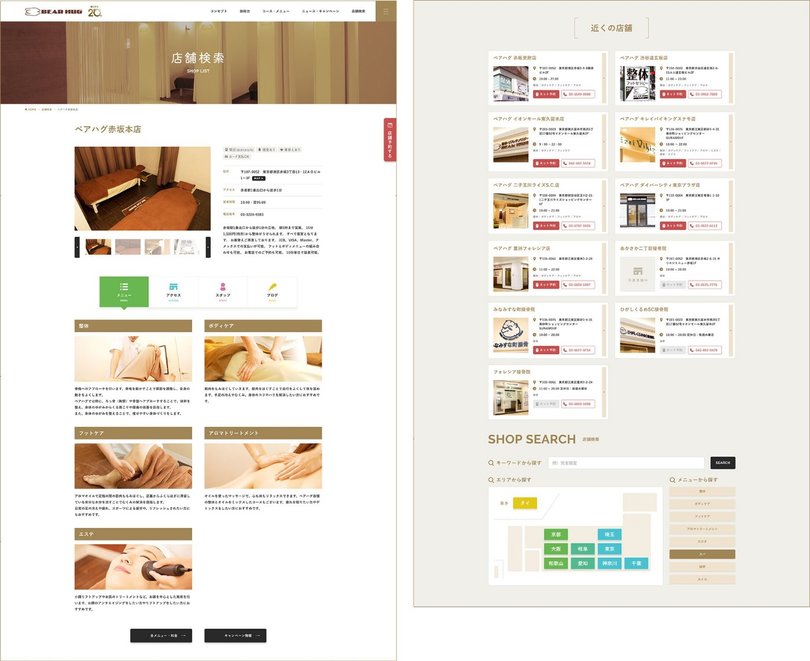 オフィシャルサイトのリニューアルは多店舗の検索機能を導入するために、基本機能で検索に優れているa-blog cmsはうってつけでした。ブログと同じく多数の店舗情報があるため、各店舗ごとのスタッフ情報などの更新をお客さまでも実施できるように構築することが必須条件でした。