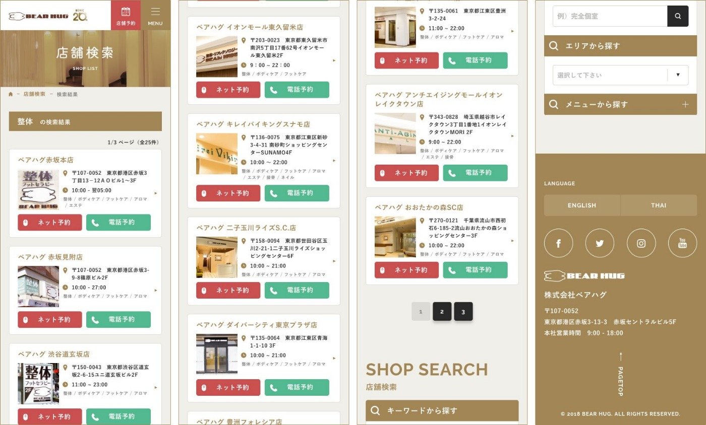 店舗検索一覧ページでは、新規客・既存客にとって優先的に知りたい情報を選択し、「比較しやすさ」を意識してスクロール(移動)範囲が狭まり・かつ情報を取得しやすい余白やフォントサイズに配慮しました。
