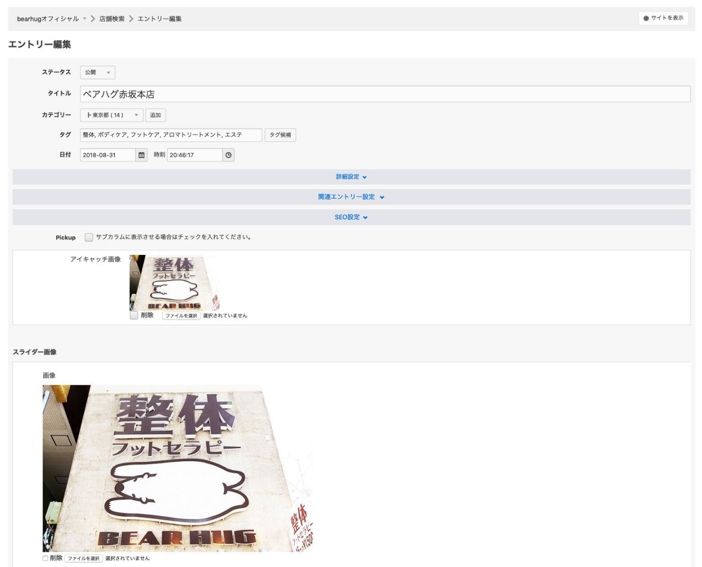 整体事業を中心に多数の事業を運営している株式会社ベアハグ様では、これまで店舗ごとにブログはもっていませんでした。ですが、お客さまのご要望として店舗ごとにブログをやりたいというものがありました。各店舗間での運用方法の統一等を行い、より運用を活性化させるため、a-blog cmsを導入することになりました。