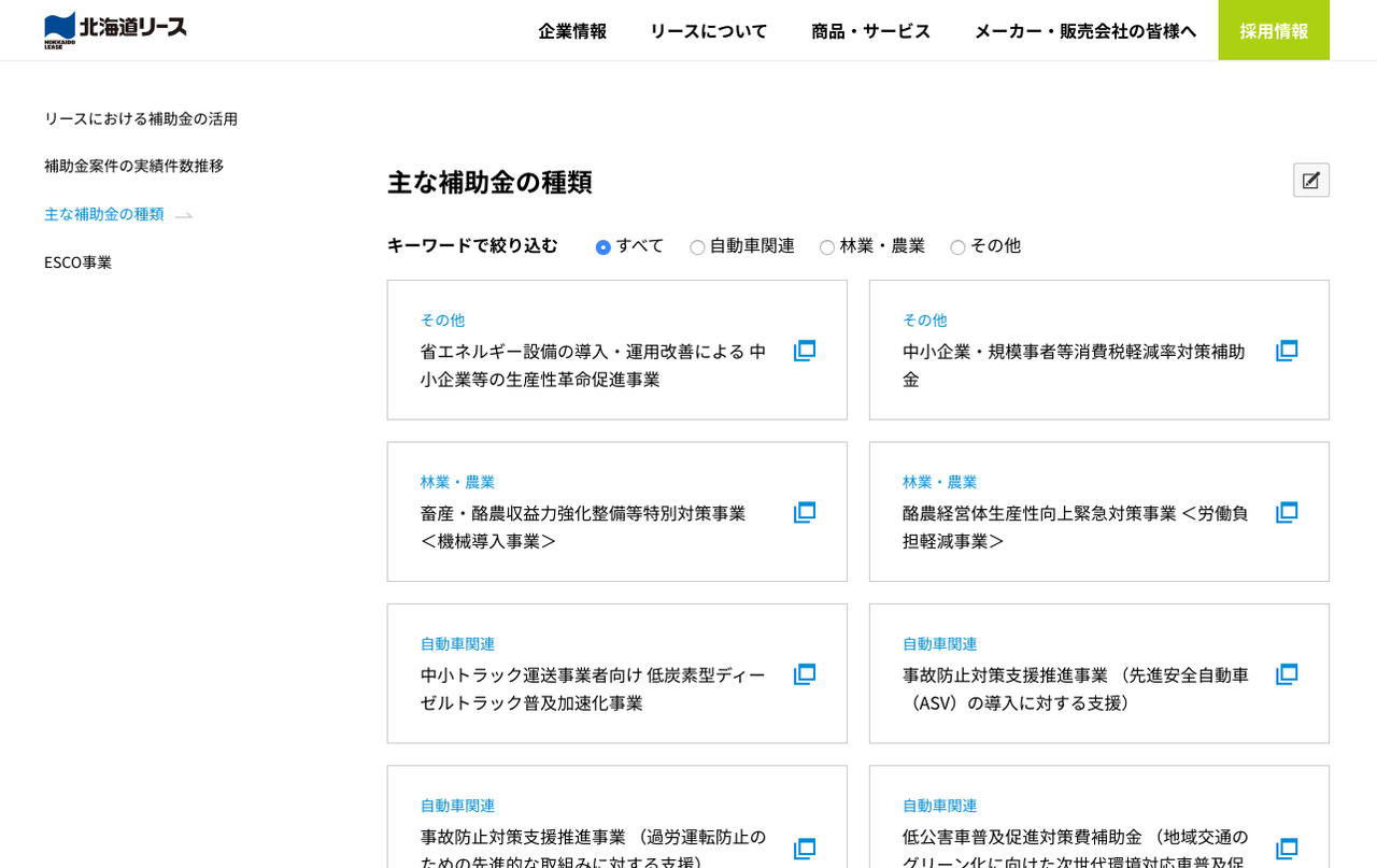 ワークショップを経て、コンテンツの仕様を定める中で、「ここは頻繁に更新したい、年に一回だが、自社で管理したい」といった要望がでてきました。特に北海道リース様の場合、リースにかかる「補助金」の情報や、リース活用事例、企業の業績など、その種類や更新頻度の粒度もバラバラで、多岐にわたりました。さらに、担当者の運用負担を減らすことも同時に求められました。 そこで、a-blog cmsのコア機能である「タッチモジュール」を活用し、ページ上に「ログイン時のみ表示できる編集ボタン」を設置しました。特別なプログラミングの知識を必要とせず、短時間での実装が可能でした。 さらに、更新箇所を一つの領域におさめるため、ログイン後に表示される管理ボックス内に、横断的な「更新ボタン」を配置しました。