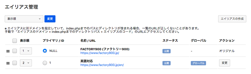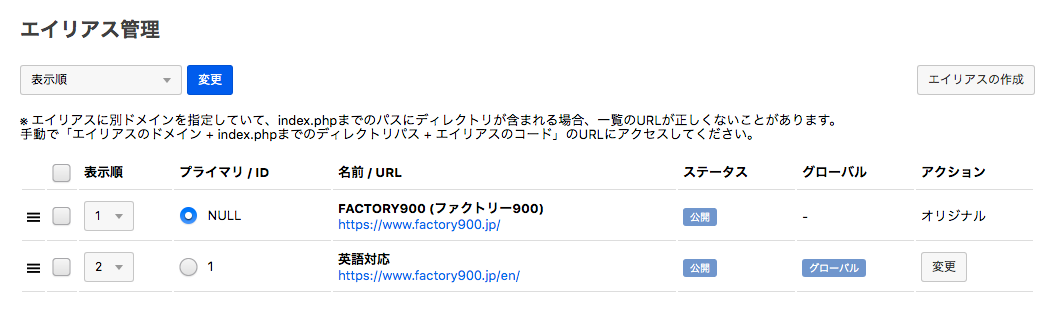 エイリアスを使った多言語化 をすると、設定したコードが自動でURLに含まれます。