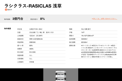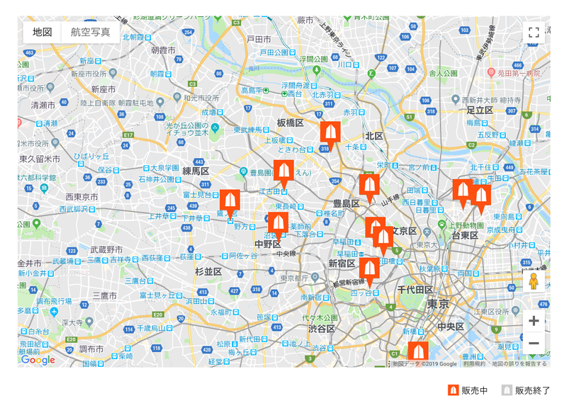 物件の購入において、物件の「所在地」は非常に重要な要素です。a-blog cmsには、Google マップを挿入するユニットが標準で用意されていますが、今回は、物件毎にマップの挿入がほぼ必須であったため、カスタムフィールドとして提供しました。 a-blog cmsでは、公式ドキュメントでGoogle Maps APIの導入の流れが用意されています。API keyを設定することで、Google マップをページに挿入することができます。今回の物件情報のように「所在地」を地図で表示したい場合にとても便利です。 さらに、エントリーが持つGoogle マップの情報を集約し、物件の所在地を俯瞰して確認できる「全体マップ」も実現できました。