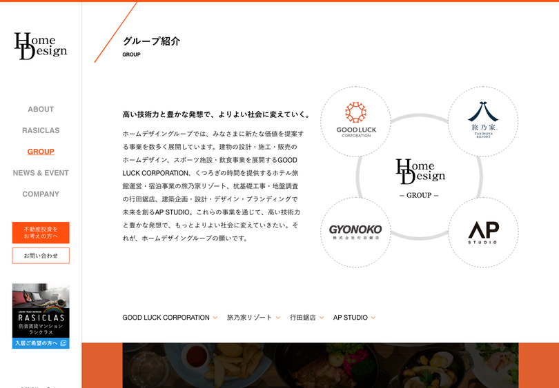 ホームデザイン様は、飲食事業や宿泊事業(ホテル・旅館)など、建築を軸とし、様々なジャンルのグループ会社を展開しています。a-blog cmsは設計思想が「企業のやりたいことが実現しやすい」というところが魅力的で、クライアント様からも好評を得られています。