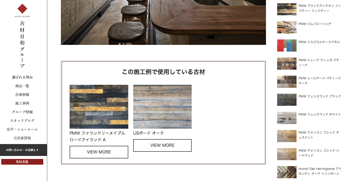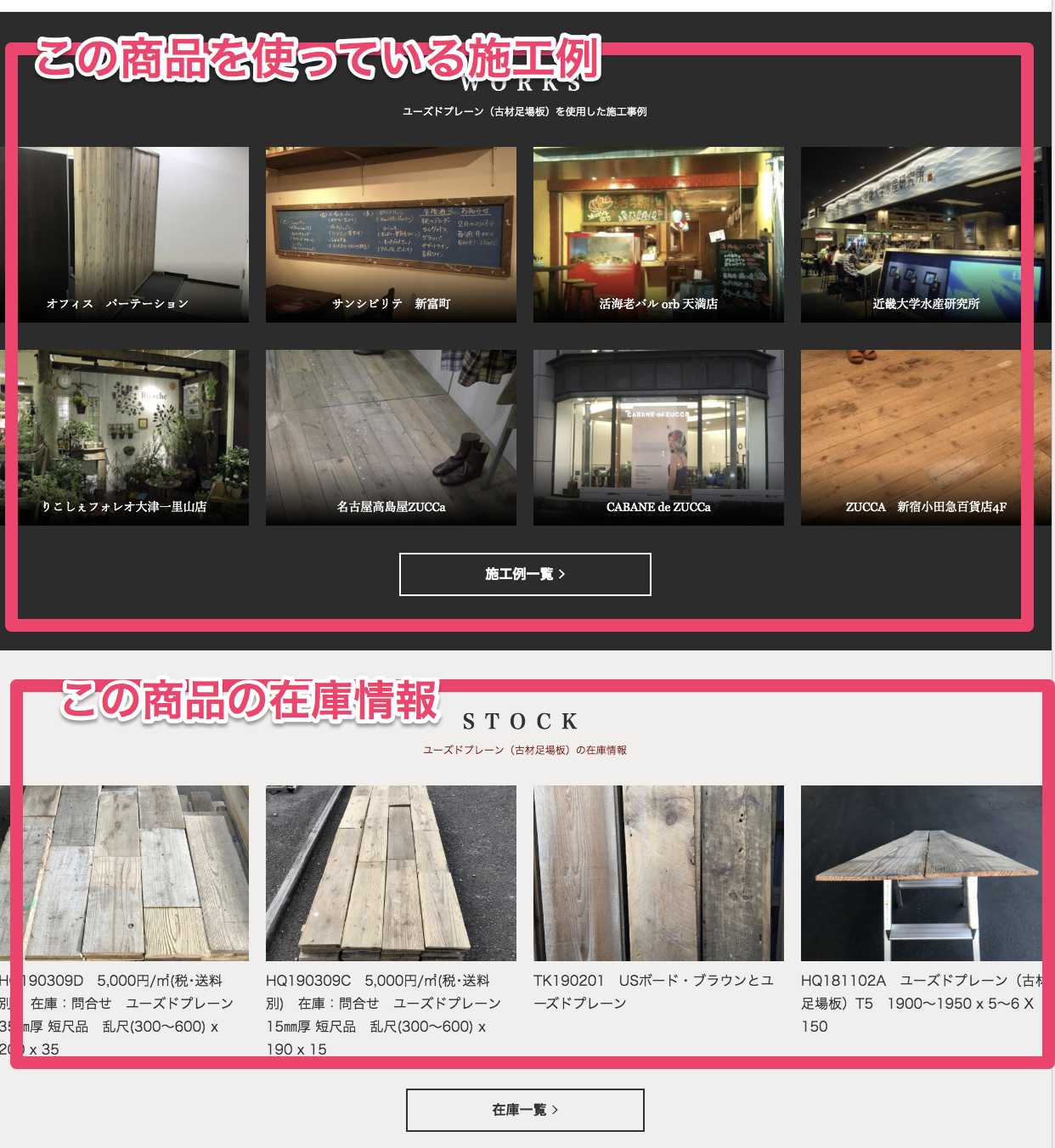 リニューアル前は静的ページで作成されており、異なるコンテンツ間の行き来の導線が弱い状態でした。そこをCMS化し、商品情報、在庫、施工例それぞれをスムーズに遷移できる導線を追加しました。