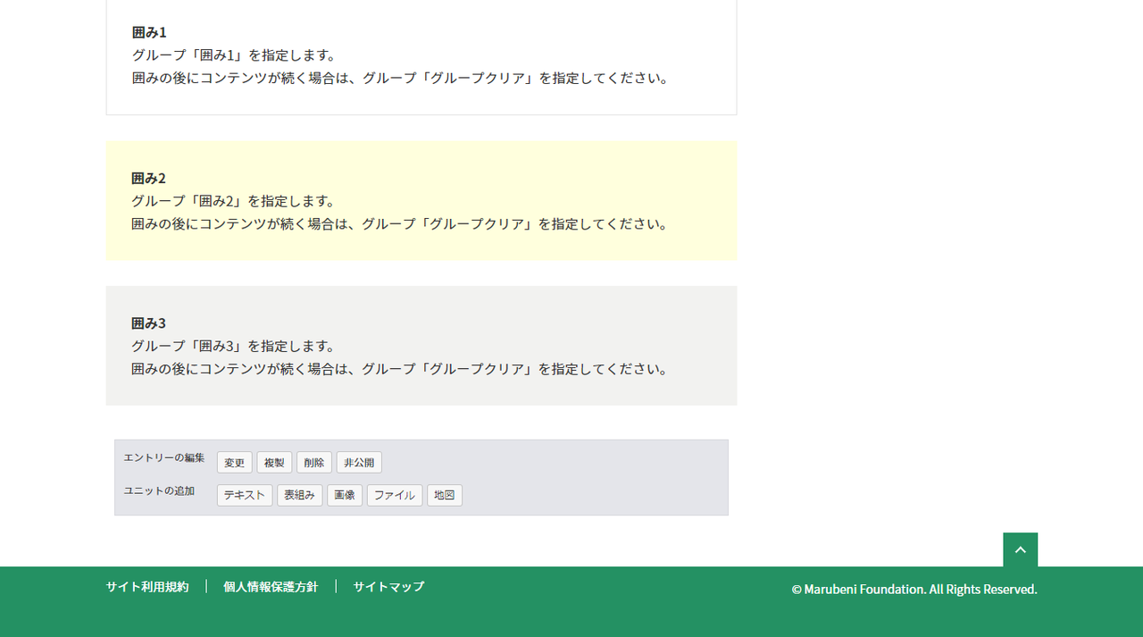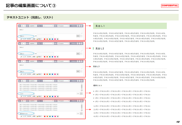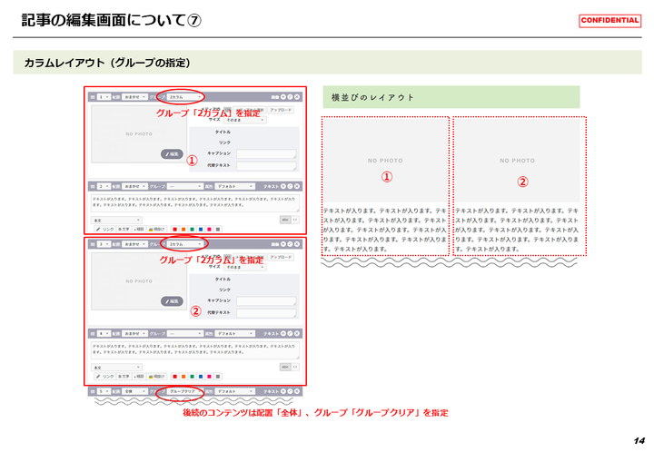 弊社ではWebサイトの納品後に、1時間ほどの操作説明会を開催するとともに、30ページほどの更新マニュアルをお渡ししています。既存のページを修正したり、新しい記事を作成するところからご説明し、慣れてきたら文字の着色や、ユニットのグループの設定(2カラム、3カラム)にもチャレンジいただいています。