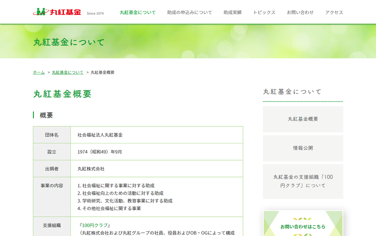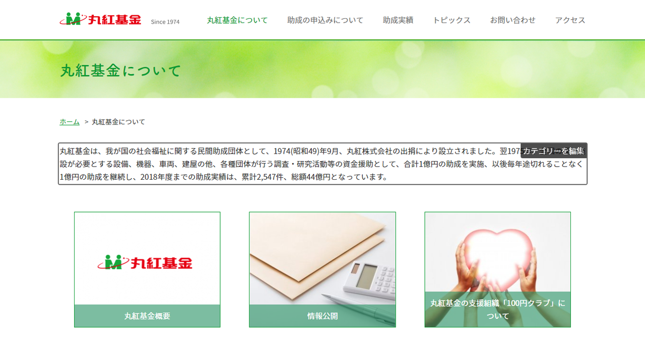 丸紅基金様は1974年より総合商社丸紅株式会社ならびに丸紅グループの役員、社員、OB・OG、その他関係者の寄付により、全国の福祉団体へ様々な分野での社会福祉助成を行う団体です。