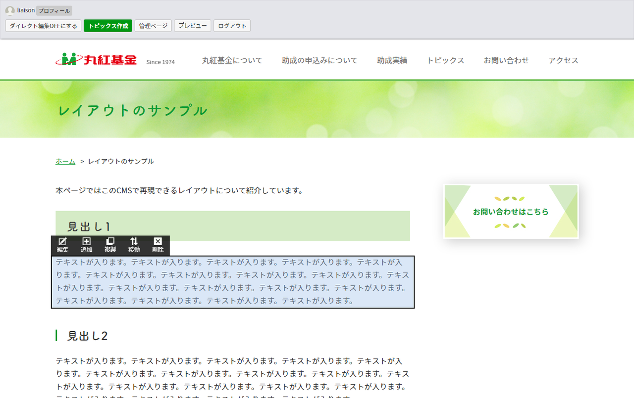今回、旧サイトのコンテンツ管理システムのサポート終了にともない、リニューアルの提案の機会をいただきました。そこで、ブロック型エディタで分かりやすい操作性に定評があり、グループ企業でも多くの導入実績がある「a-blog cms」をご提案させていただきました。