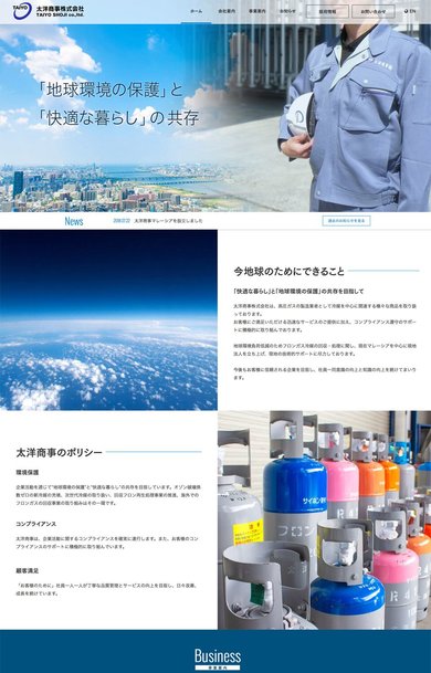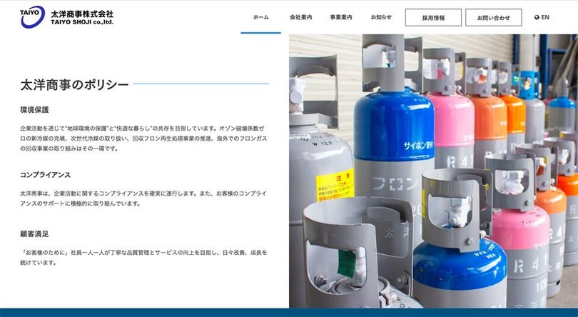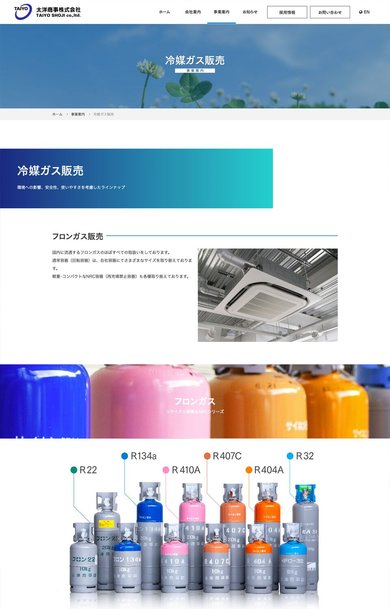 冷蔵設備などに使われる冷媒ガスを取り扱う太洋商事株式会社さまのコーポレートサイトのリニューアルをさせていただきました。Webサイトリニューアルにあたり、いただいたご要望は以下の通りです。
