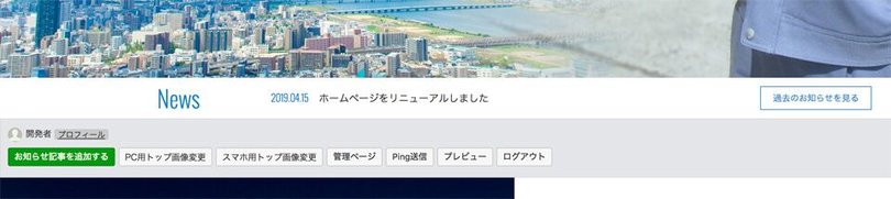 更新頻度が高い「お知らせ」はひと目でわかる位置にエントリー追加ボタンを設置しました。 クライアントさまのオフィスで更新レクチャーをした際には、HTMLの知識がないスタッフの方でも更新ができるとご好評をいただいています。