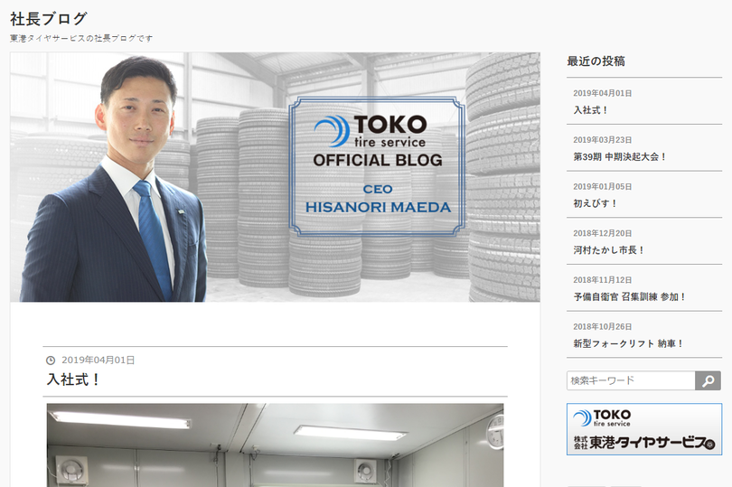 ブログは多忙な社長自ら更新され、「移動中でもスマートフォンから更新できて便利」と好評です。
