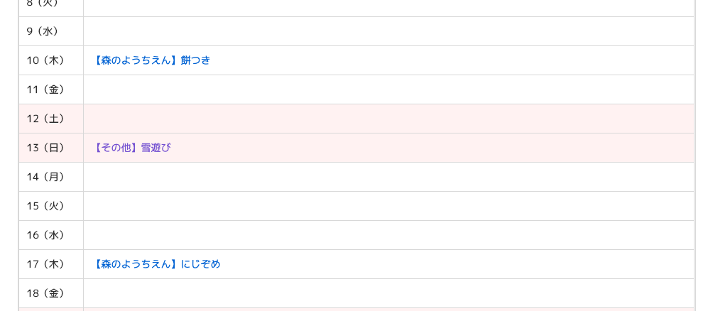 また、シークレットブログとして作成した内部用カレンダーではスタッフの方がカレンダー形式でイベントのスケジュールを確認できるようになっています。