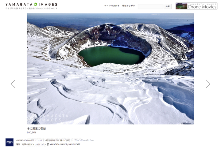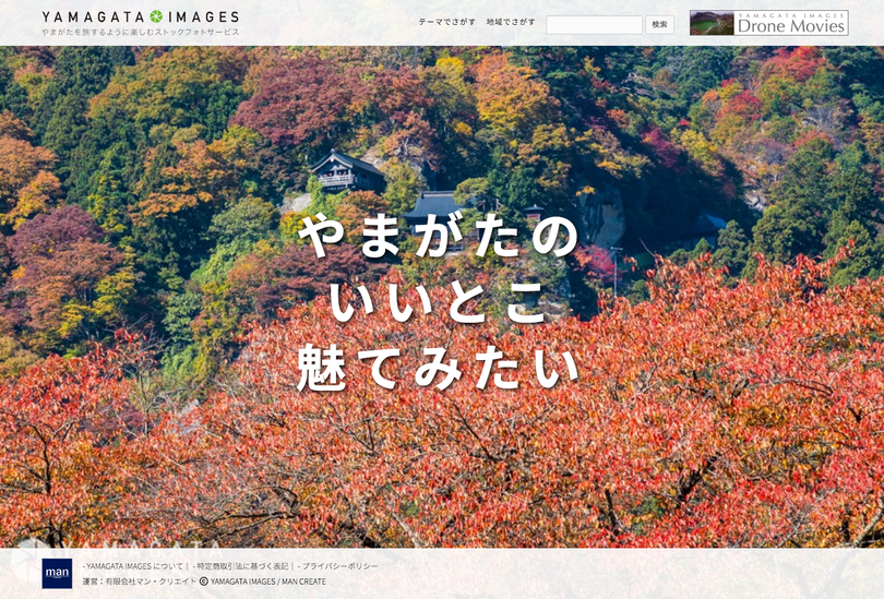 「山形を旅するように楽しむ」をコンセプトに、山形県内の写真を中心としたストックフォトサービス「YAMAGATA IMAGES」を開始しました。従来のストックフォトサービス(レンタル写真/写真素材サイト)と大きく違う点は、商用素材の提供に加えて、山形県内の名所・名物の紹介文と紹介サイトへのリンクを併載していることです。