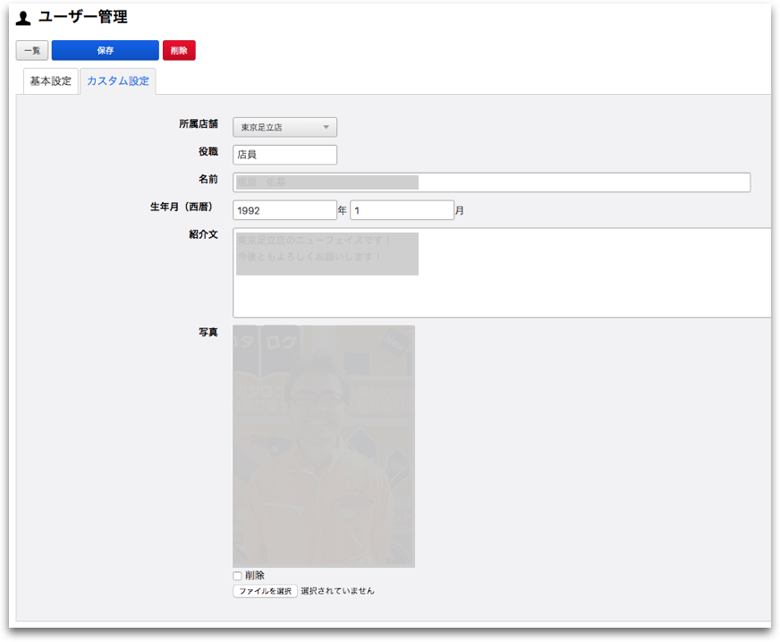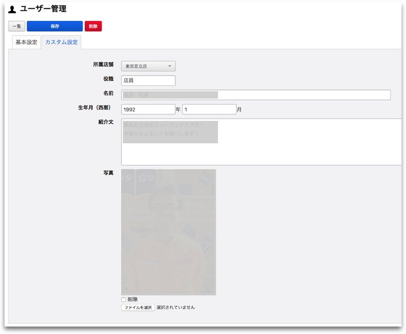 他にも店舗担当者の移動があるということで、ユーザー管理画面にカスタムフィールドで所属店舗などの情報を持つことで、将来、店舗が変更しても簡単に変更できるようなカスマイズをしました。