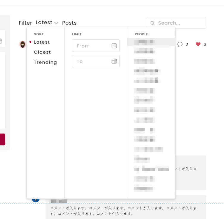 コメントについてもエントリーで保存されているため標準機能で搭載ができました。入力欄を最小限にすることで、チャットツールのように投稿できるようにしました。