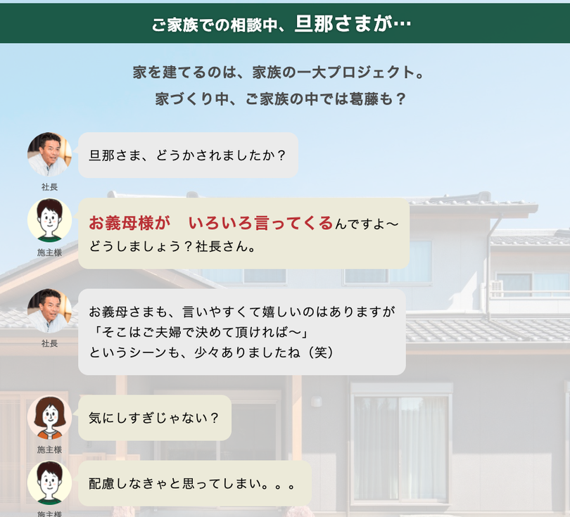 侘蔵(わびくら)様は、愛知県の工務店さんです。 侘蔵の社長さんは、家の悩み相談を受け付ける「ハウスコンシェルジュ」サービスを提供中。 大手ハウスメーカーで家を建ている最中の方が侘蔵さんへ相談する・・・なんていうことも、しばしばあります。 ウェブサイトでも「住む人に寄り添い、家を建てたあとも頼れる工務店さん」であることが、エンドユーザーさんへ伝わるようにリニューアルしました。
