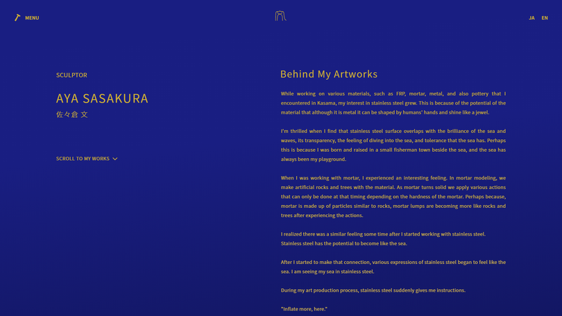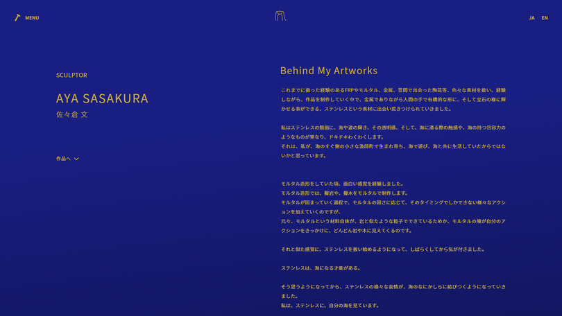 本サイトは彫刻家 佐々倉文 様 の個展や作品の紹介、活動状況を掲載するための、日本語、英語の二言語サイトです。