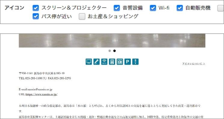 施設の機能的情報も、エントリー編集画面でチェックを入れるだけで、アイコン表示されるようになっています。