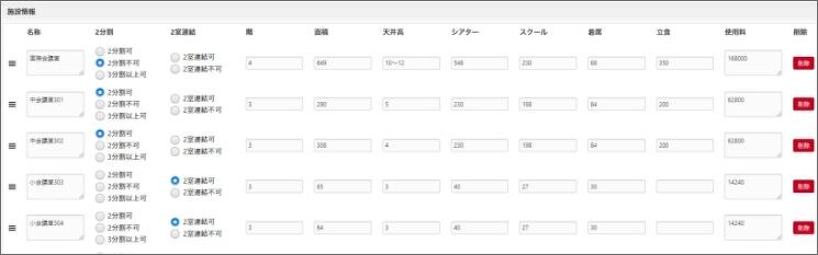 施設の収容人数の部分もテーブルユニットではなく、1項目ずつ入力フォームを設置しました。