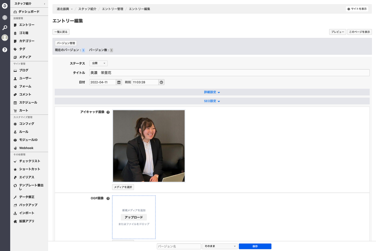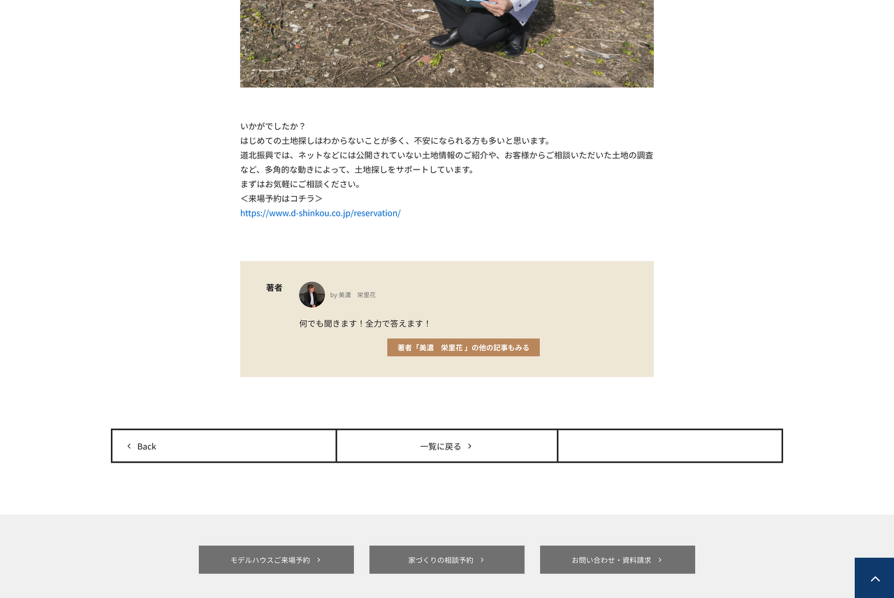 住宅会社のサイトでは、スタッフをサイトで紹介することはよくあります。特に営業スタッフは、エンドユーザーと接点を持つため、サイトに訪れてスタッフを確認するシーンは、結構あります。スタッフの情報(プロフィールや写真)は、CMSで管理可能にしました。 また、そんなスタッフは、コラムで家づくりに関するさまざまなノウハウを更新します。 著者と先述のスタッフ情報を紐付ける仕組みを実装しています。スタッフの増減に伴って、コラム側の著者情報は自動で更新されます。