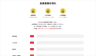 新規営業時のサポートツールとしてや、既存取引先の満足度向上・ニーズ掘り起こし材料として活用するため、サイトは完全会員制に。BtoB向けのため1アカウントを取引先の複数人が共有することを想定し、読者ユーザーの作成及びパスワード変更はサイト管理者のみが行えるしくみにしています。