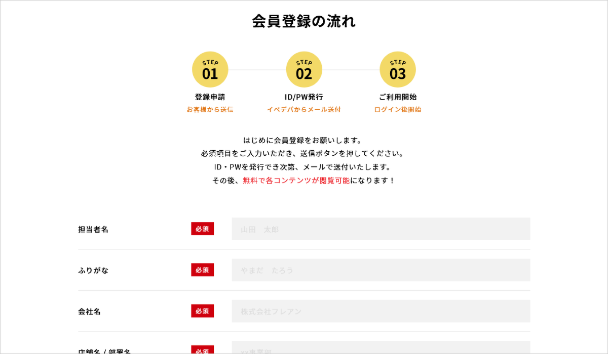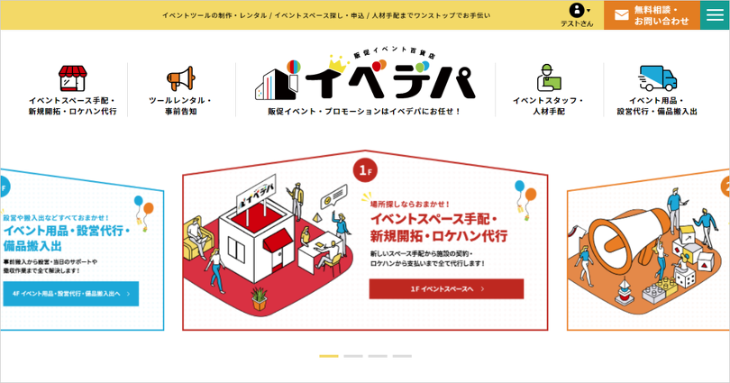 「販促イベント百貨店 イベデパ」は、株式会社フレアン様が運用する、携帯キャリア業界のイベントプロモーションをサポートする完全会員制の情報サイト。 イベント運営にかかわる知見の属人化や営業担当者のリソース不足、運営実績の認知度UPが課題となっており、自社の知見や商材・実績を詰め込んだサイトを構築しました。 気軽に情報を追加更新できるようa-blog cmsを導入し、これまで担当者がそれぞれ個別で完結さていた業務について周知・均質化が出来るようになると共に、取引先からの相談が自然と集まる環境を整えることができました。