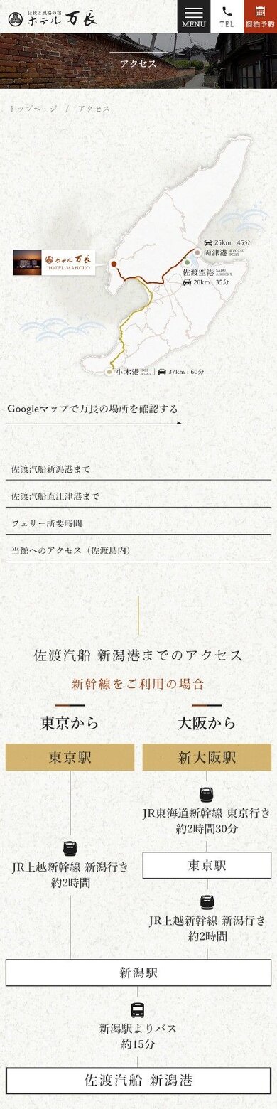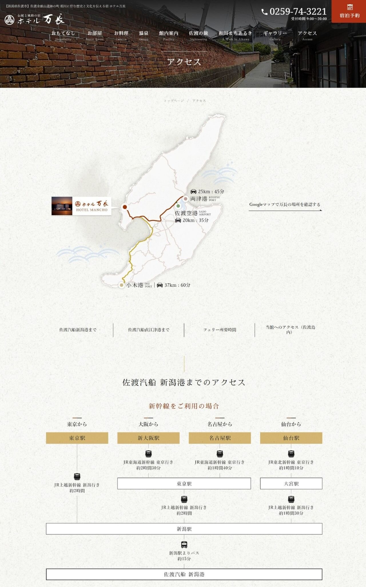 ホテル万長様は新潟県佐渡島にある老舗ホテルです。「佐渡の歴史と文化に出会う宿」として、相川まちあるきやオリジナル海洋体験といったサービスの提供や、佐渡ゆかりの書画・美術品を館内で公開されているなど、佐渡の歴史と文化を訪れた方に伝えたいという想いがとても強いお客様です。 万長様の熱い思いをWebサイトで表現するべく、a-blog cms の複数の機能を使いながらボリュームあるコンテンツを見やすく、またコンテンツを追加しやすい構成で作成しました。