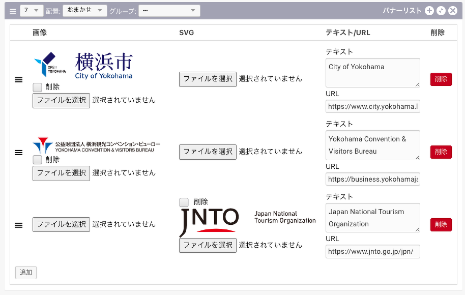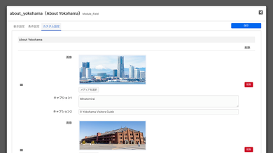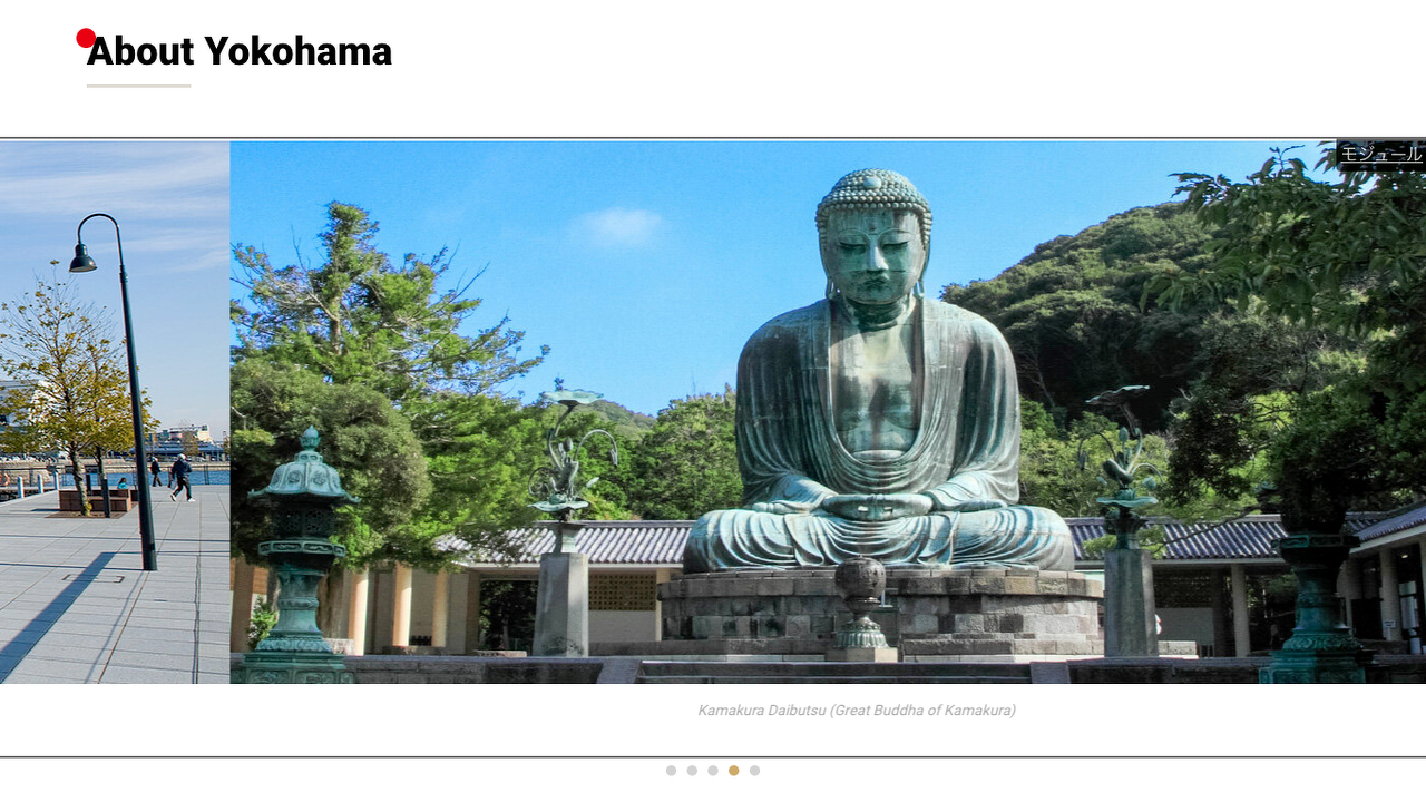 トップページの「Important Dates」や「About Yokohama」のスライドショーはマウスオンで編集できるようにしました。マウスオンで編集画面がモーダルで立ち上がる、パーツごとに更新する箇所をまとめられるのは他の製品にない魅力です。