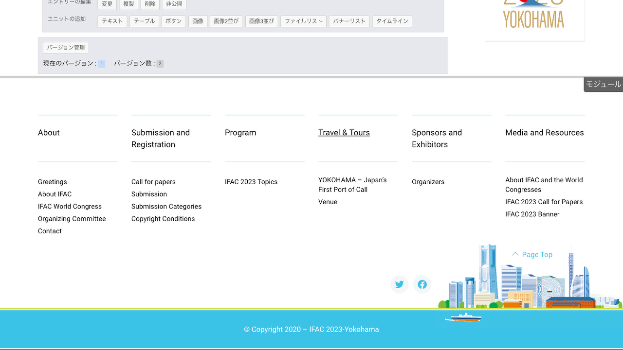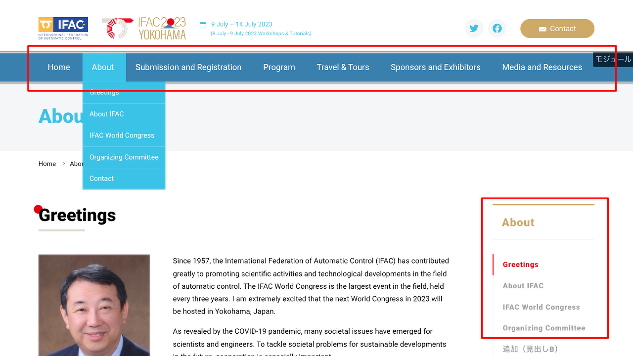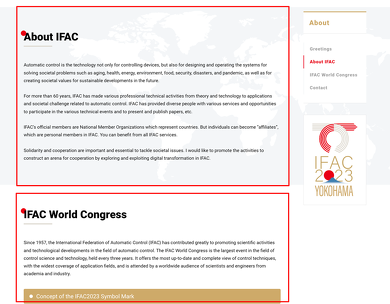 2023年に開催される「第22回国際⾃動制御連盟総会」(IFAC World Congress 2023)の公式Webサイトを a-blog cms で構築しました。