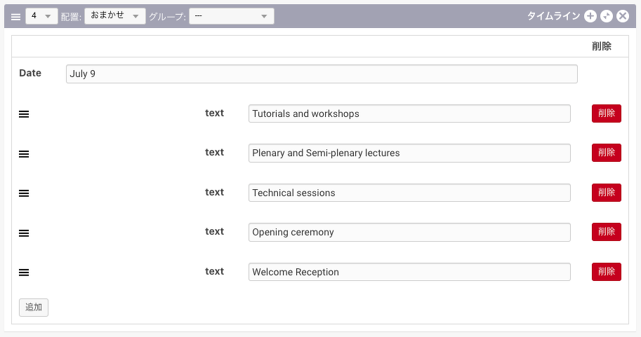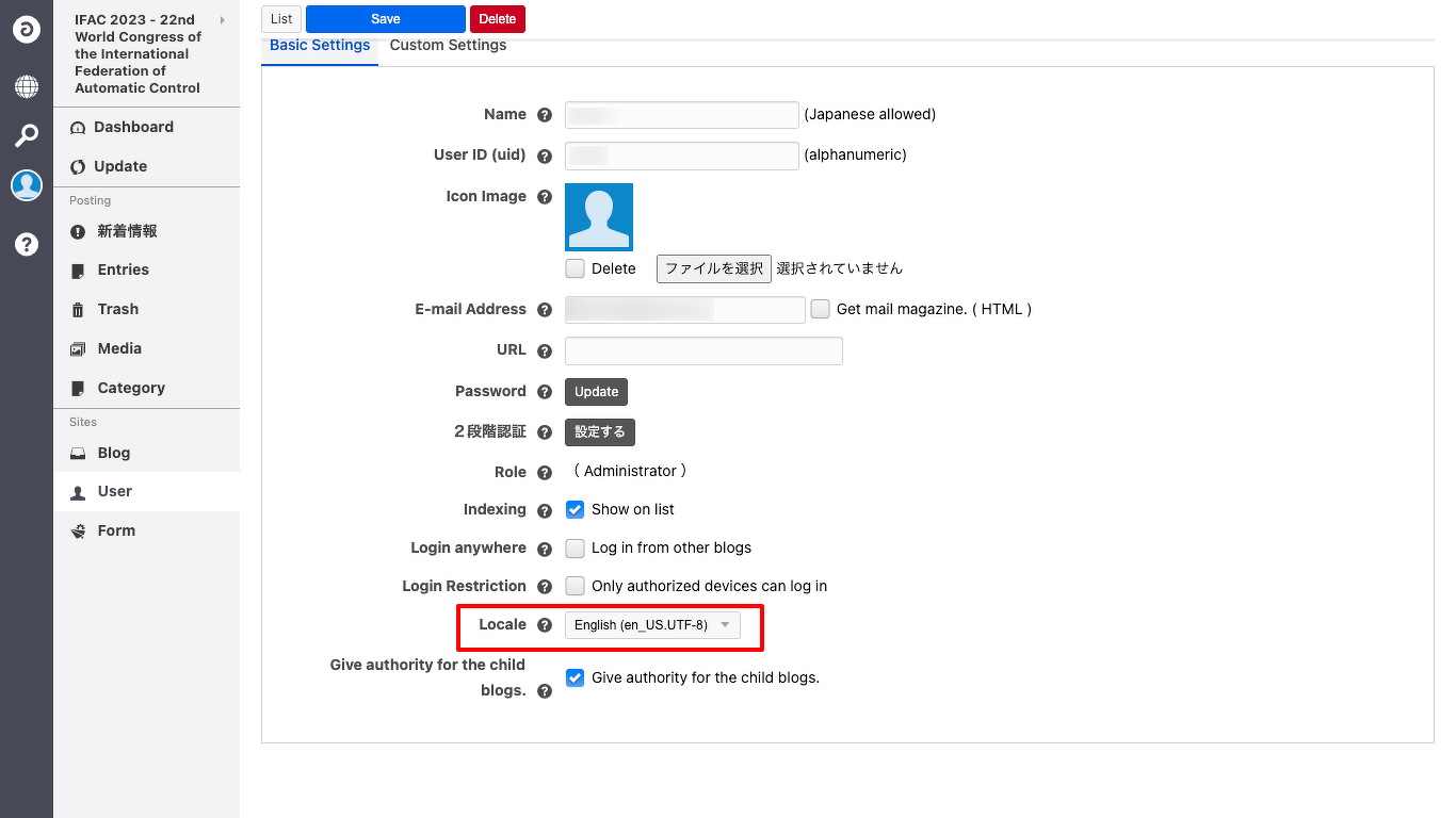 a-blog cmsでは英語版の管理画面も用意されているので、日本以外のメンバーが増えたときにも更新できるようになっています。一部日本語のままの箇所もありますが、今回の国際会議の用途では導入の決め手の一つとなりました。