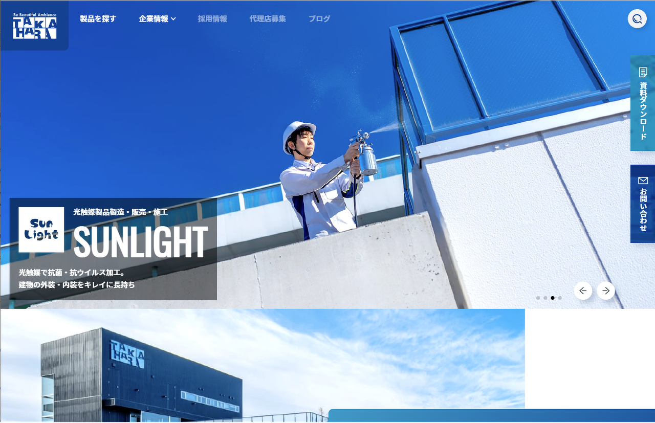 タカハラコーポレーション様のオフィシャルサイトです。 自社開発されている超高品質のビバフィルムを活用したフィルム・テープといった製品から、建物のクリーニングなど環境の美化に関わるサービスを紹介しています。 今回サイトのリニューアルのお話をいただいた際のご要望として「集客を強化」し、リード獲得を目指したサイトにしたいとご要望をいただきました。 その上でマーケティングとブランディングの両輪を回すことを念頭に、企画から設計、デザイン、サイト構築まで一貫して制作しました。