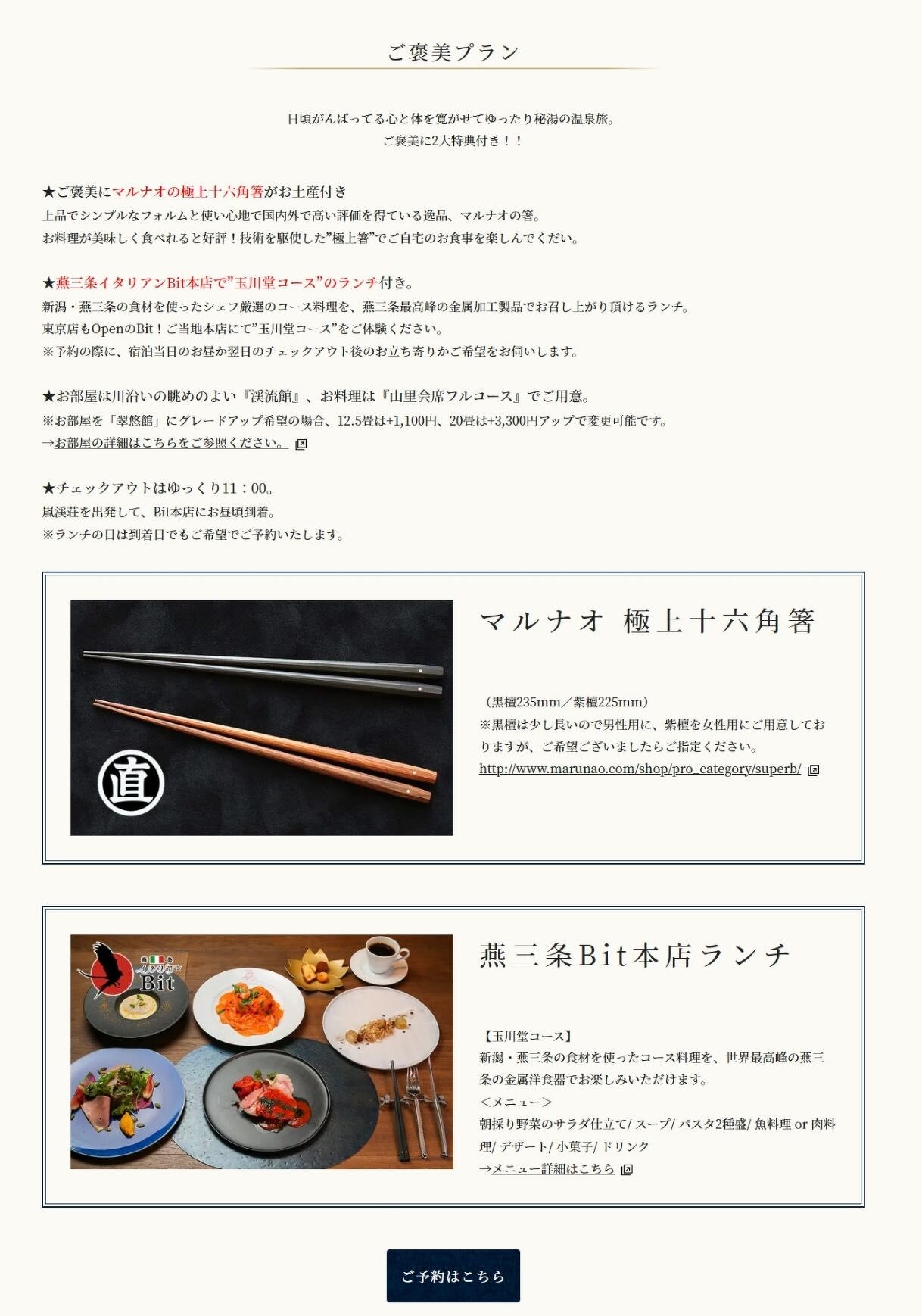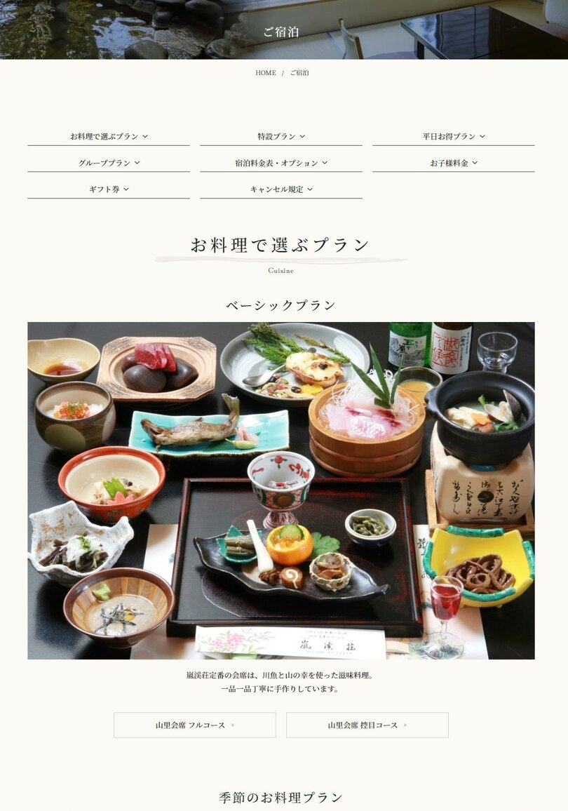 現在はお客様にてサイトを更新いただいていますが「問題なく情報の追加・編集ができています」とのお声をいただきました。公開以降、プラン情報ページの内容が増えている様子が伺えますので、今回用意した様々なユニットを使用して、嵐渓荘様の情報発信にご活用いただいているようです。