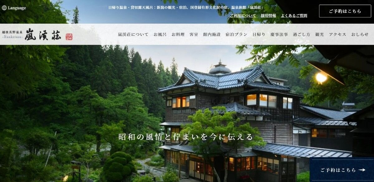 今回のサイト制作は、新しい客室とお食事場所の完成に合わせてWebサイトもリニューアルしたい、というご相談からスタート。ミーティングで「情報量が多いので、煩雑な印象にならず、わかりやすく利用しやすいホームページにしたい」と伺ったので、お客様が「スクロールするだけで宿の魅力を理解できる」構成を検討。嵐渓荘様らしい魅力がストレートに伝わるサイトを目指しました。