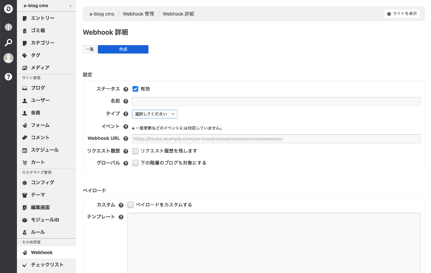Webhook 機能を活用することで、a-blog cms を単なる CMS としてだけでなく、他のビジネスツールと連携した総合的な顧客管理やデータ管理システムとして活用できるため、サイト運営の効率を大幅に向上させることが可能です。