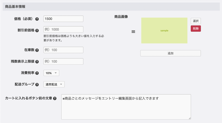 ショッピングカートへの商品の追加や削除、追加した商品の数量の更新など、基本的なショッピングカート機能を利用できます。1エントリーを1商品として扱います。