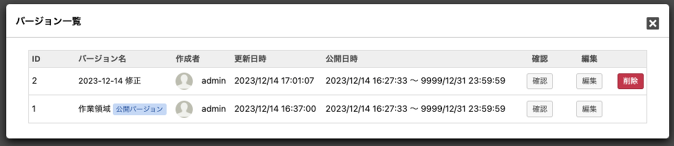 - 重要な情報を誤って変更・削除してしまった場合でも、数クリックで以前のバージョンに復元可能です。これにより、編集ミスへの不安が軽減され、ストレスのない運営が実現します。