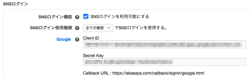 Googleアカウントを使ったSNSログインのための準備には「Client ID」と「Secret Key」の2つの情報が必要になります。