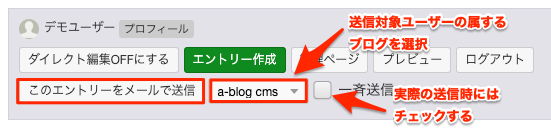 a-blog cmsでは、メールマガジン機能として、作成済みのエントリーをa-blog cmsのユーザーにメールとして送信する機能があります。