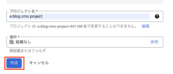 分かりやすい名前を入力して作成ボタンをクリックしてください。