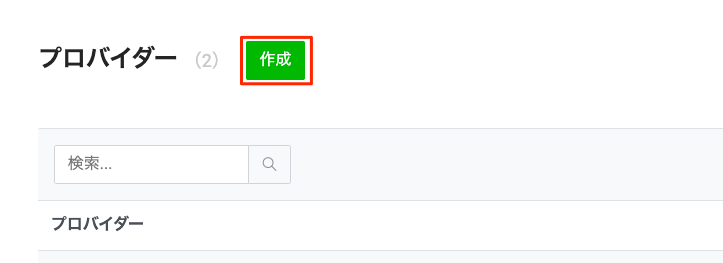LINE Developers https://account.line.biz/login/ にアクセスし、LINEアカウントあるいはビジネスアカウントでログインします。まずはプロバイダーの右側、「作成」ボタンをクリックしてプロバイダーを作成します。