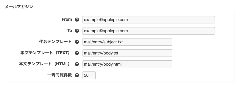 送信先の他に、メールマガジンの送信元や件名、本文のテンプレート等を設定します。