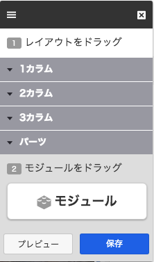 1.と2.の作業を必要に合わせて繰り返し、最終的にレイアウト機能の操作パネルの「保存」ボタンで追加・変更した内容を確定します。実際に保存する前には、レイアウト機能の操作パネルの「プレビュー」ボタンからPC、スマートフォンのそれぞれの変更後の状態を確認できます。