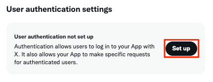 次に User authentication settings の Set up ボタンをクリックしてください。