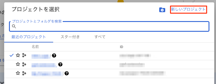 表示されるモーダルウィンドウで「新しいプロジェクト」をクリックします。
