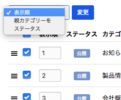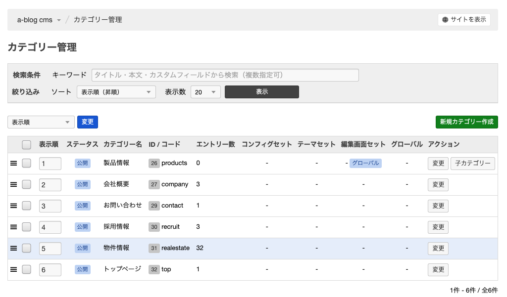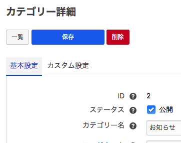 この画面では、そのブログに登録されているカテゴリーが一覧で表示されています。