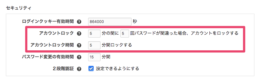 アカウントロック機能ではロックする条件と、ロックする時間が設定可能です。