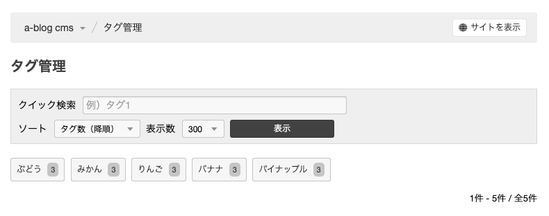 a-blog cmsの管理ページは、エントリーの追加や変更とは別に、様々な管理機能をまとめた管理ページとして存在します。