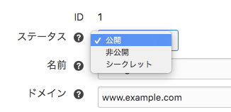 この画面のステータスから公開状態を変更します。ステータスには3つの選択肢があります。