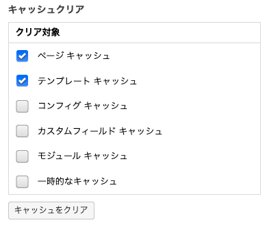 クリアしたいキャッシュにチェックをつけて「キャッシュをクリア」ボタンを押してください。