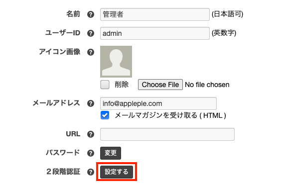 ユーザー一覧のページに移動し、二段階認証を有効にしたいユーザーを選び「変更」ボタンをクリックします。