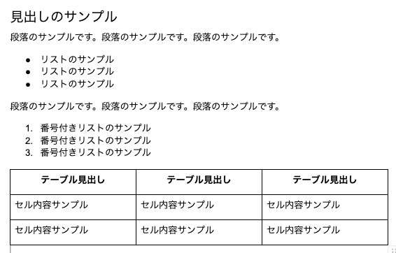 - 書式(段落、リスト、見出し、コードに切替が可能)